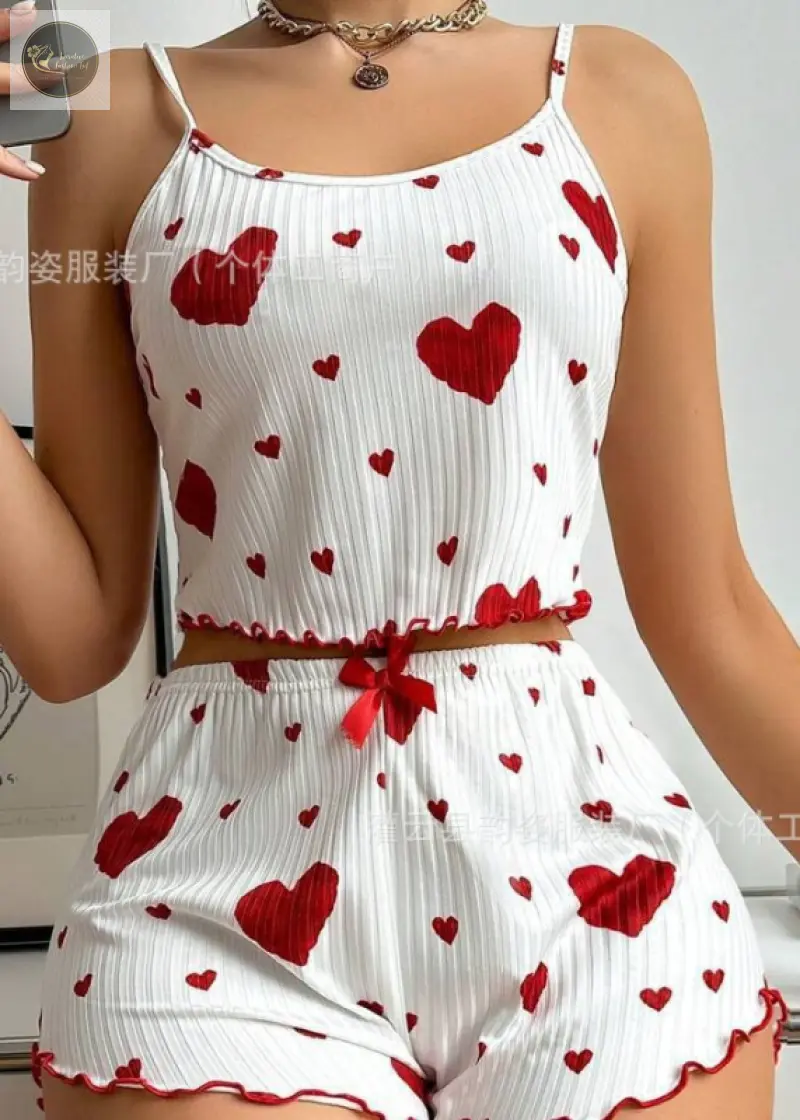 Pajamas Set Sleepwear 2 PCS Short Tank Tops And Shorts S M L White Ventilate Soft Casual Love Printing