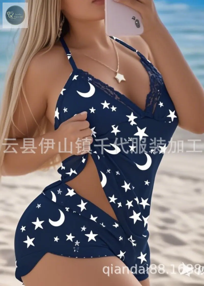 New Summer Women’s Sexy Solid Color Long Sleeved Skirt Style Outer Shirt Split Bikini Swimsuit Set