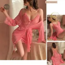 Sexy Lace Lacey Lingerie Set – Steel Ring Gathered Halter Top See-through Sexy Nightgown Set of 2 Pieces Including Underwear